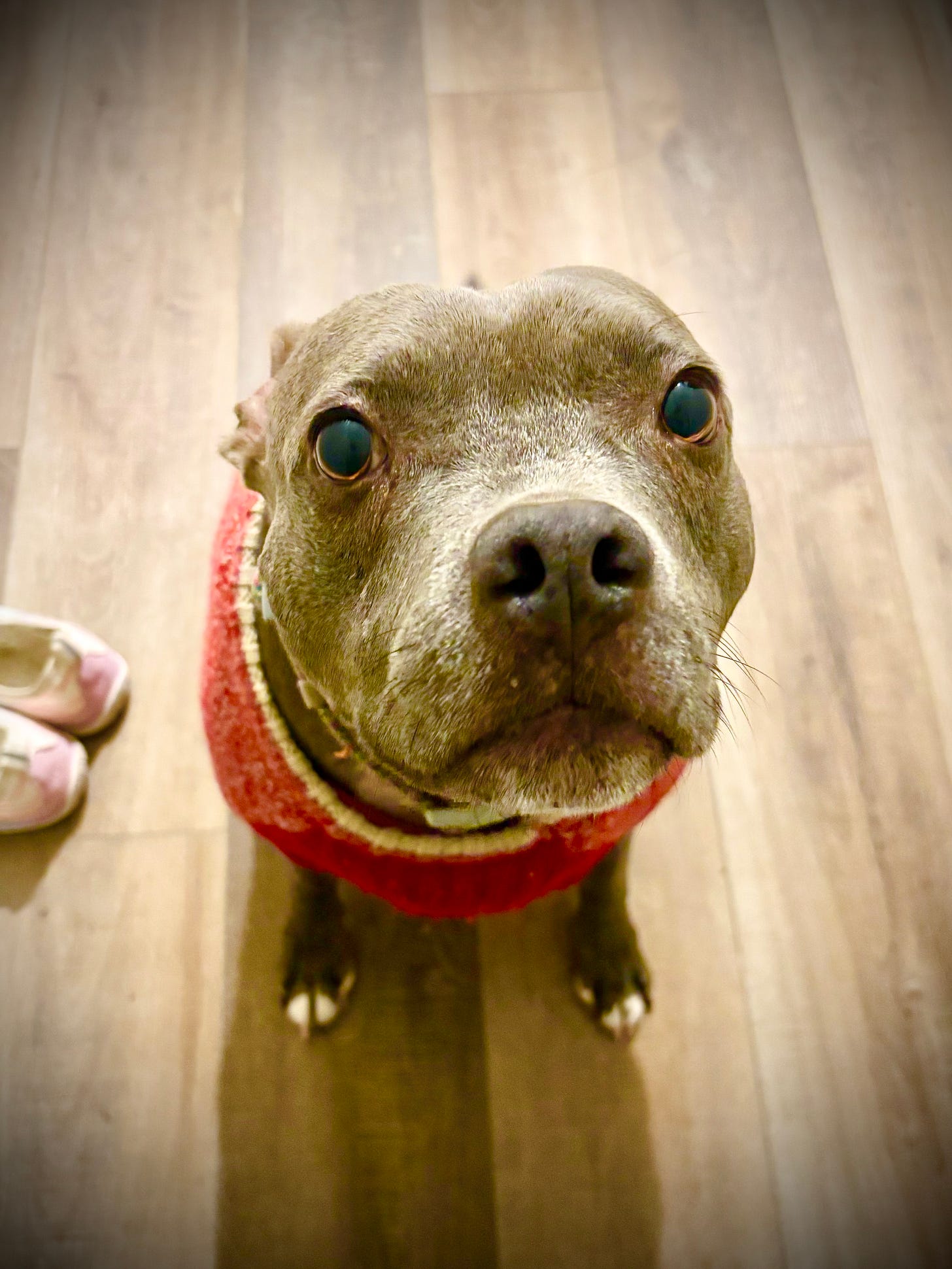 For everything she is, she’s not an uncomplicated dog. Her past means she’s afraid of literally everything. Her worried eyes pierce my heart. Sometimes that fear comes out as aggression. I’ve never let her off-leash with other dogs. I don’t know if I will ever be able to board her. She will try to eat any living creature smaller than her. There’s a whole song and dance we have to do when people come to the house. Sometimes I have pangs of secret guilt and envy when I see how carefree other people’s dogs move about in the world. Some folks just let their dogs play with other dogs?! They just have people come into the house all willy nilly?!